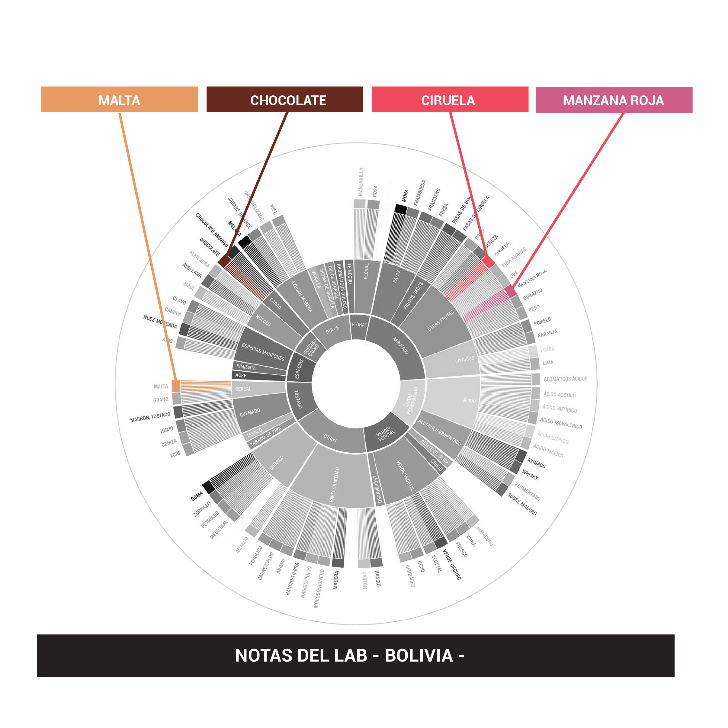 Notas del Lab: Chocolate, Malta, Manzana roja, Ciruela